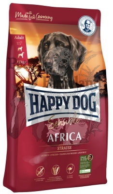 A Happy Dog Supreme Africa egy ízletes teljes értékű szuper prémium eledel strucchússal felnőtt kutyák számára. Kiválóan alkalmas a közepes- és nagytestű fajtákhoz tartozó, érzékeny táplálkozású, speciális igényű kutyáknak is.