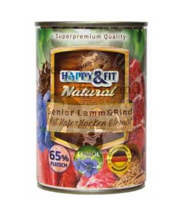 Happy&Fit; Natural Dog senior bárány, marha zabliszttel és lenmagolajjal konzerv kutyáknak 400g